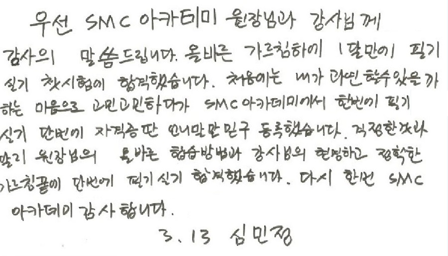 속성 합격!! 1달만에 국가자격증취득 심민정님!! [언니소개로 오신분~]