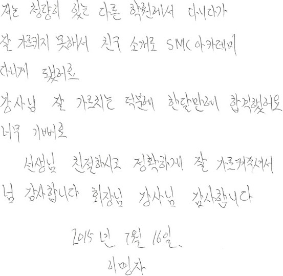• 강남SMC아카데미 구로디지털단지역점서울시 관악구 시흥대로 558-1 G밸리마인드 5층, 505호사업자등록번호 : 772-11-01570