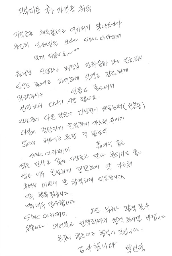 합격!! 국가자격증취득 박선덕님!!★★★★★ [다른학원 다니다 오신분~]