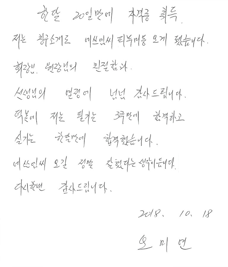 속성 합격!! 1달 20일만에 국가자격증취득 오미연님!!