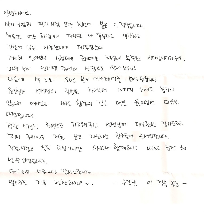 • 강남SMC아카데미 구로디지털단지역점서울시 관악구 시흥대로 558-1 G밸리마인드 5층, 505호사업자등록번호 : 772-11-01570