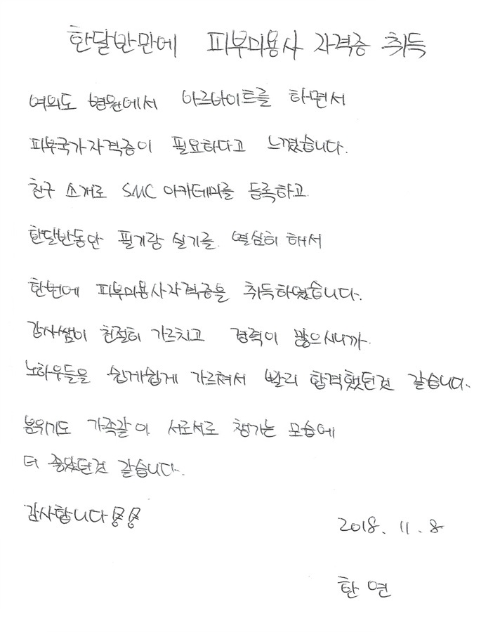 속성 합격!! 1달 15일만에 국가자격증취득 한연님!! [친구소개로 오신분~]