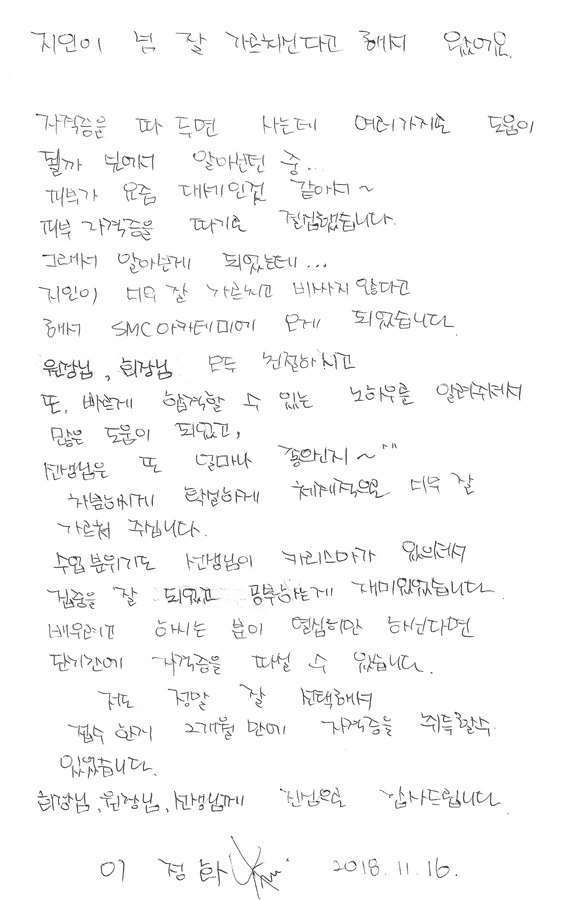 합격!! 국가자격증취득 이정화님!! [지인소개로 오신분~]