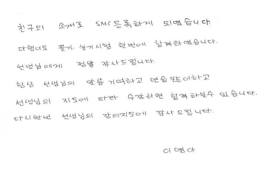 합격!! 국가자격증취득 이영아님!! [친구소개로 오신분~]
