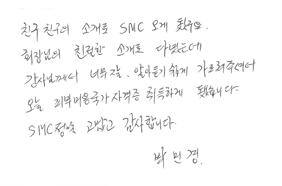 합격!! 국가자격증취득 박민경님!! [친구소개로 오신분~]