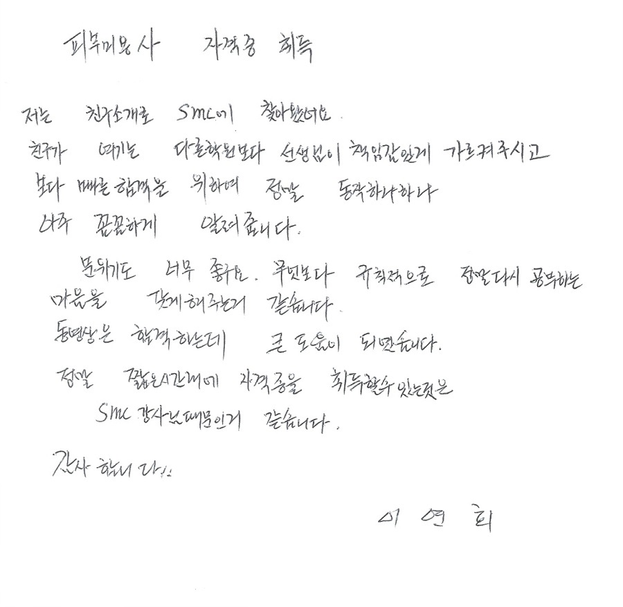 합격!! 국가자격증취득 이연희님!! [친구소개로 오신분~]