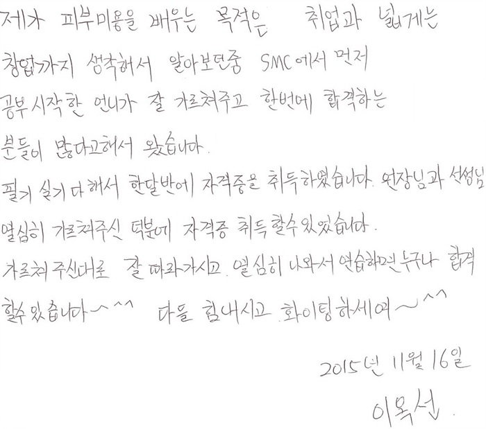 속성 합격!! 1개월 15일만에 국가자격증취득 이옥선님!! [언니 소개로 오신분~]