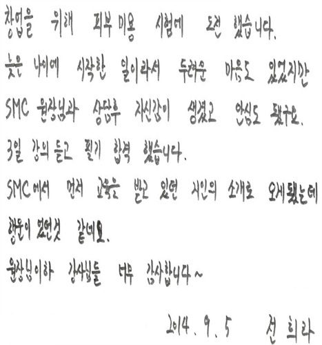 • SMC아카데미 본점서울시 종로구 수표로 120 내인빌딩 7층사업자등록번호 : 480-54-00382