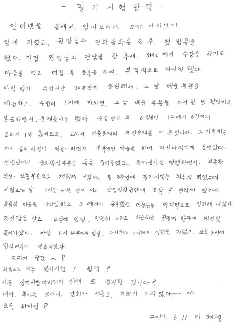 국가자격증 속성!! 이혜경님 필기 6일만에 합격!!