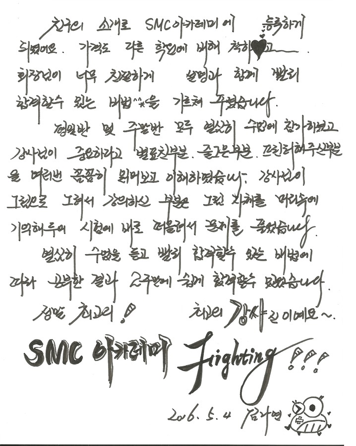 • 강남SMC아카데미 구로디지털단지역점서울시 관악구 시흥대로 558-1 G밸리마인드 5층, 505호사업자등록번호 : 772-11-01570