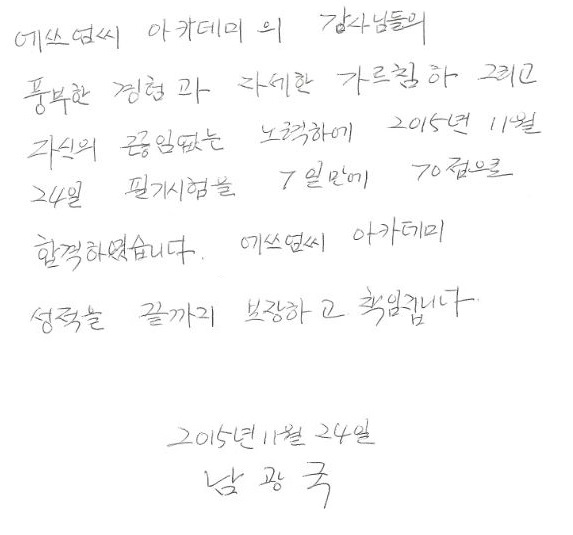 국가자격증 속성!! 남광국님 필기 7일만에 합격!! [남자분~]