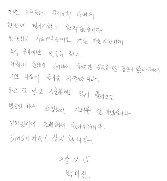 국가자격증 속성!! 박미진님 필기 14일만에 합격!!