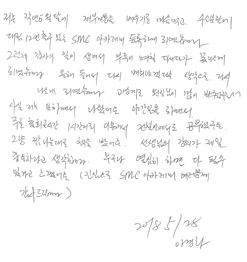 • SMC아카데미 본점서울시 종로구 수표로 120 내인빌딩 7층사업자등록번호 : 480-54-00382