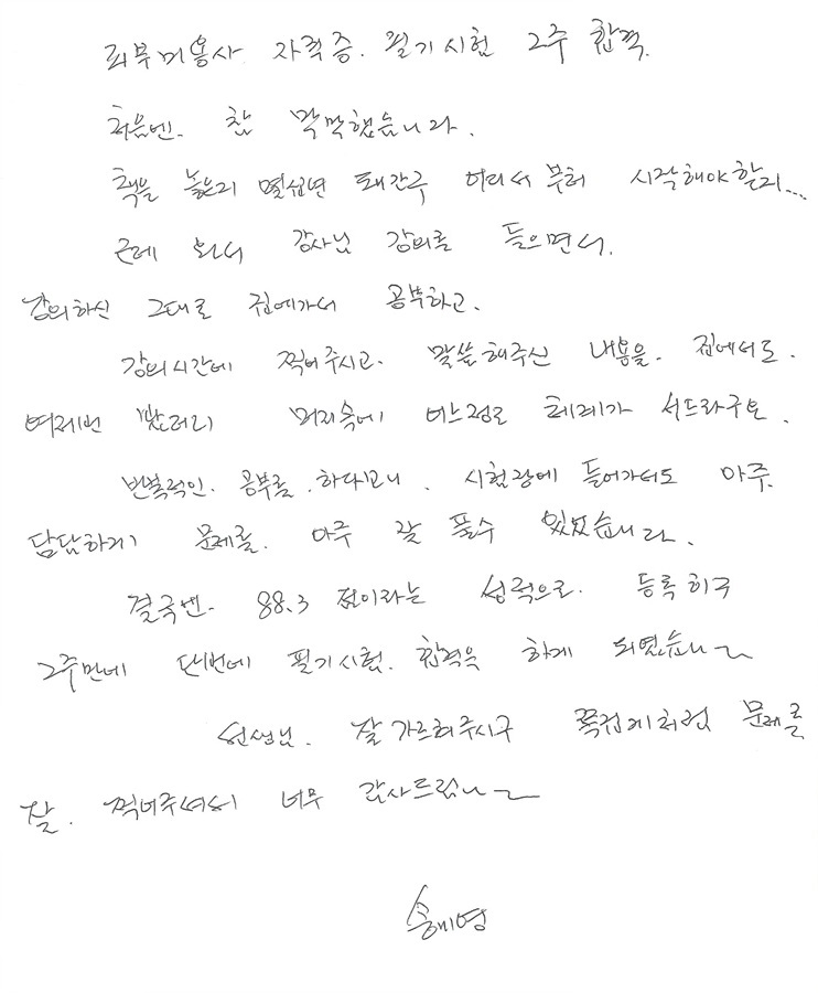 피부미용사 국가자격증 필기시험속성 합격후기!! 송미영님 14일만에합격!!