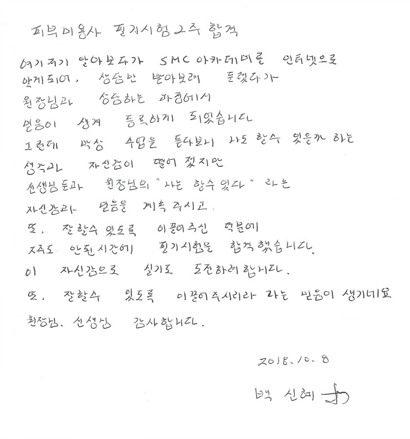 6142 피부미용사 국가자격증 필기시험 속성합격후기!! 이해옥님 20일만에 합격!!    2044