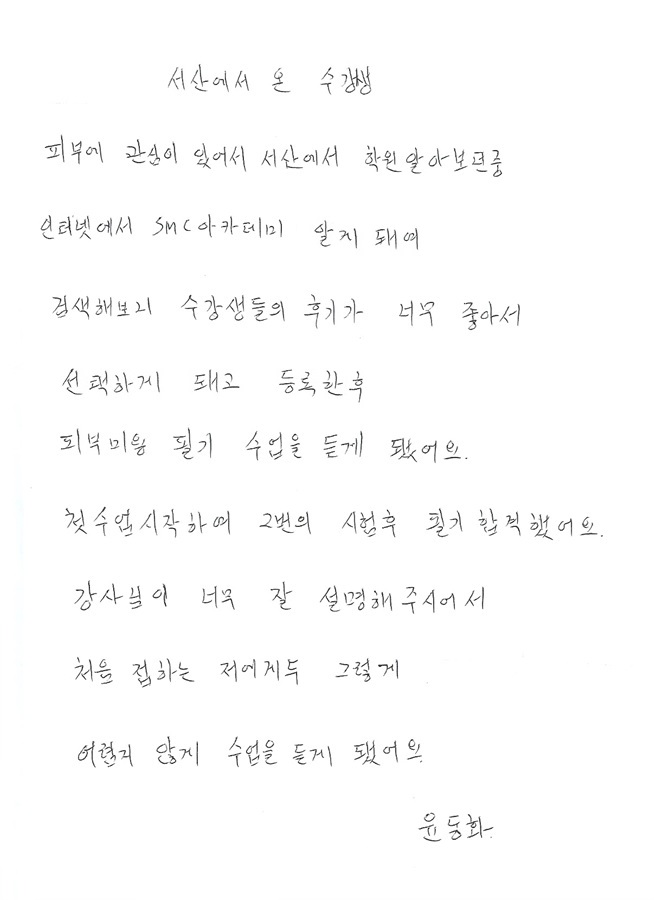 피부미용사 국가자격증 필기시험 합격후기!! 윤동화님 합격!! |