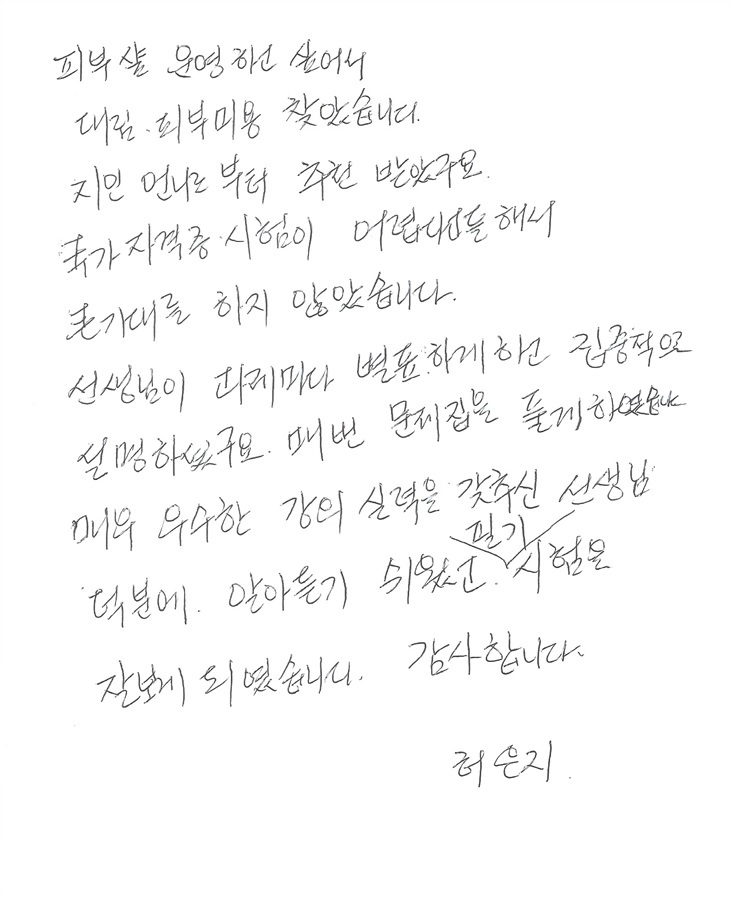 피부미용사 국가자격증 필기시험 합격후기!! 허은지님 합격!! |