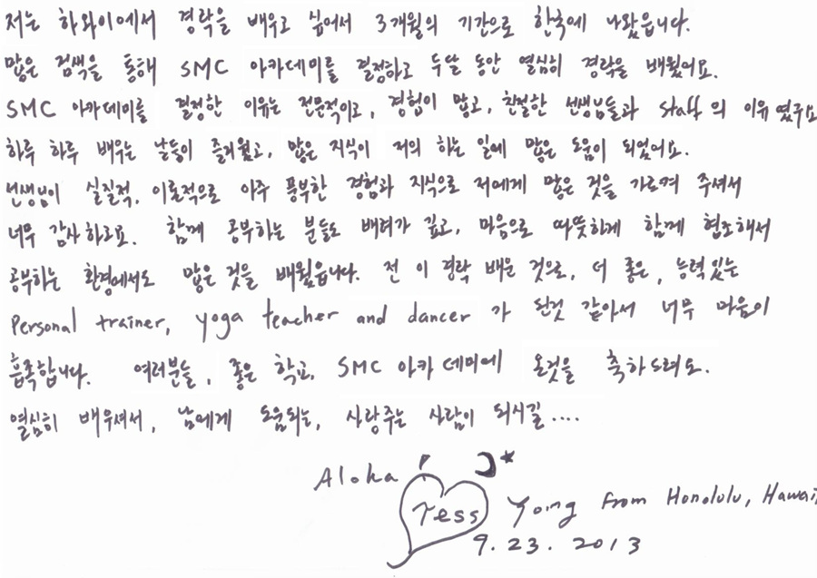 뉴질랜드에서 실무과정만을 위해 SMC아카데미로 오신 Beeca Choi님! |