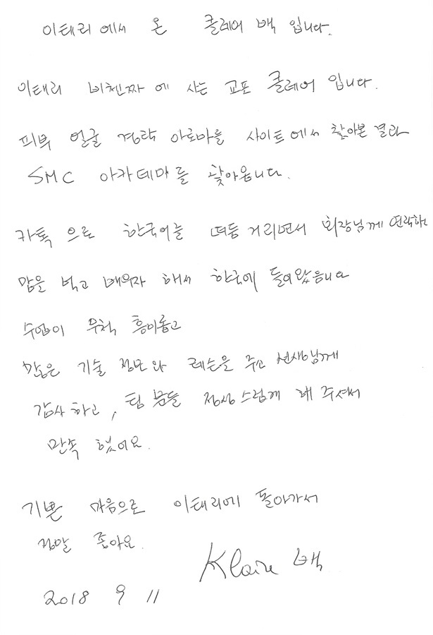 이태리에서 마사지 사업하시려고 클레어 백님 |