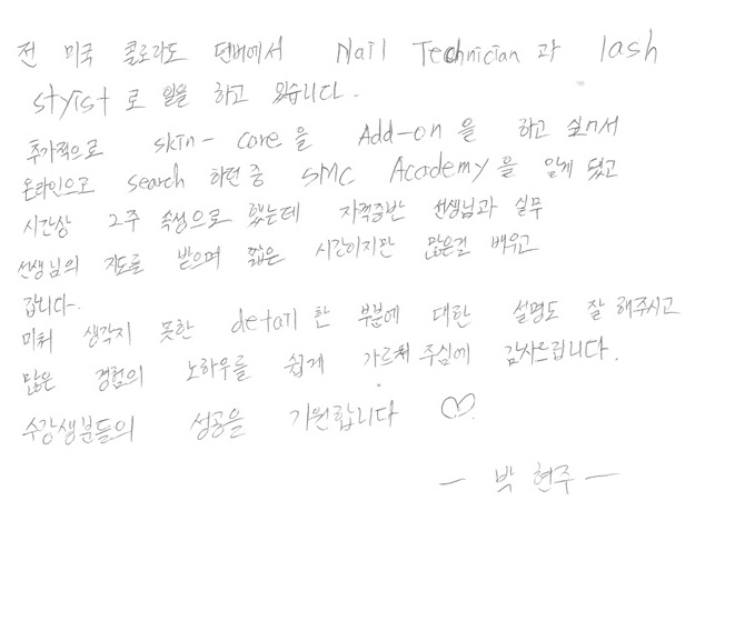 뉴질랜드에서 실무과정만을 위해 SMC아카데미로 오신 Beeca Choi님! |