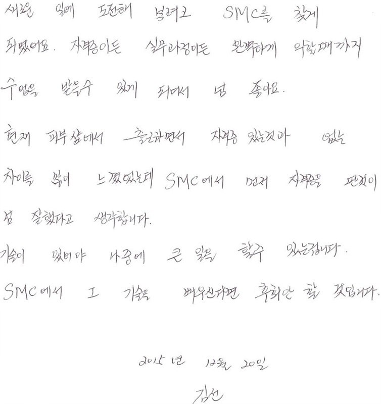 SMC에서 기술을 배우신다면 후회하지 않을 것입니다 - 김선님
