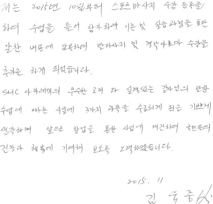 7051 스포츠마사지 교육후기 마사지를 배우고나서 배움의 즐거움찾아    김기석 388