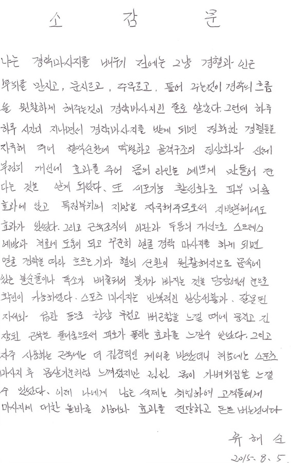 7048 스포츠마사지, 경혈지압 교육후기(주말반)배운기술을 적용했을때 회복되는 모습    장병철 440