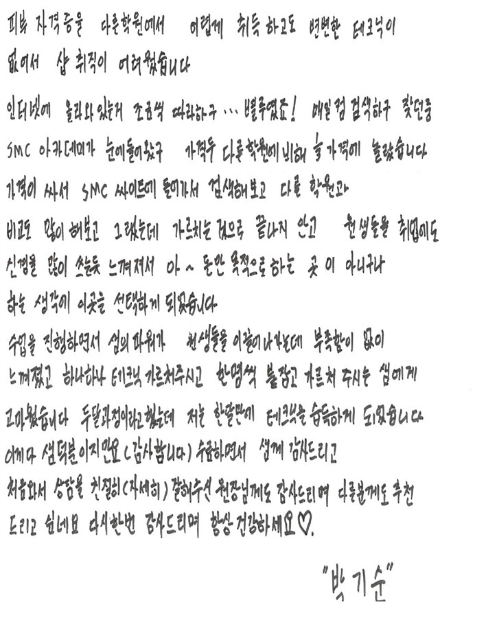 7041 종합반 교육후기, 마지막직업으로 선택해서 찾은 SMC아카데미    김수진 547