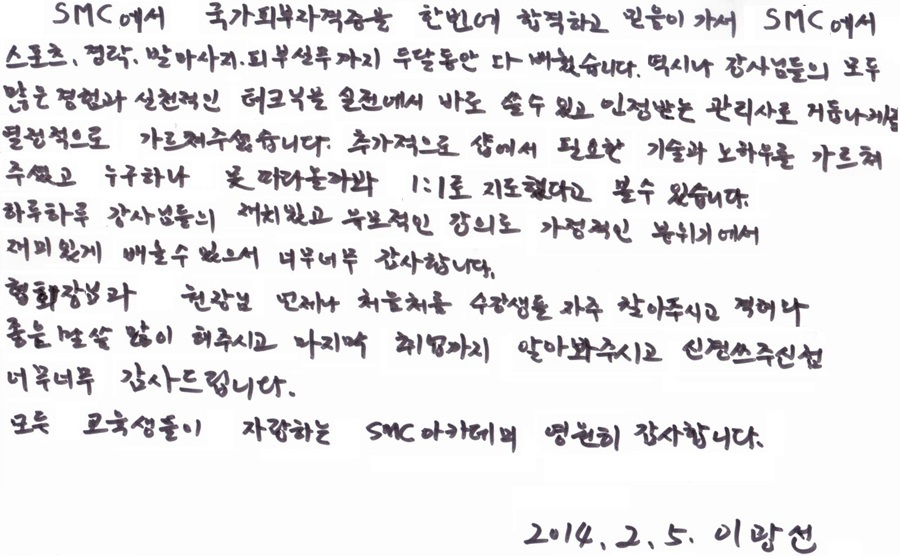 제 인생에서 꼭 필요한 SMC아카데미 였습니다 - 이광선님