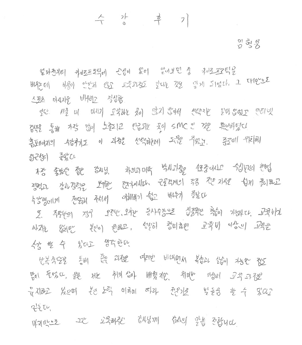 7041 종합반 교육후기, 마지막직업으로 선택해서 찾은 SMC아카데미    김수진 545