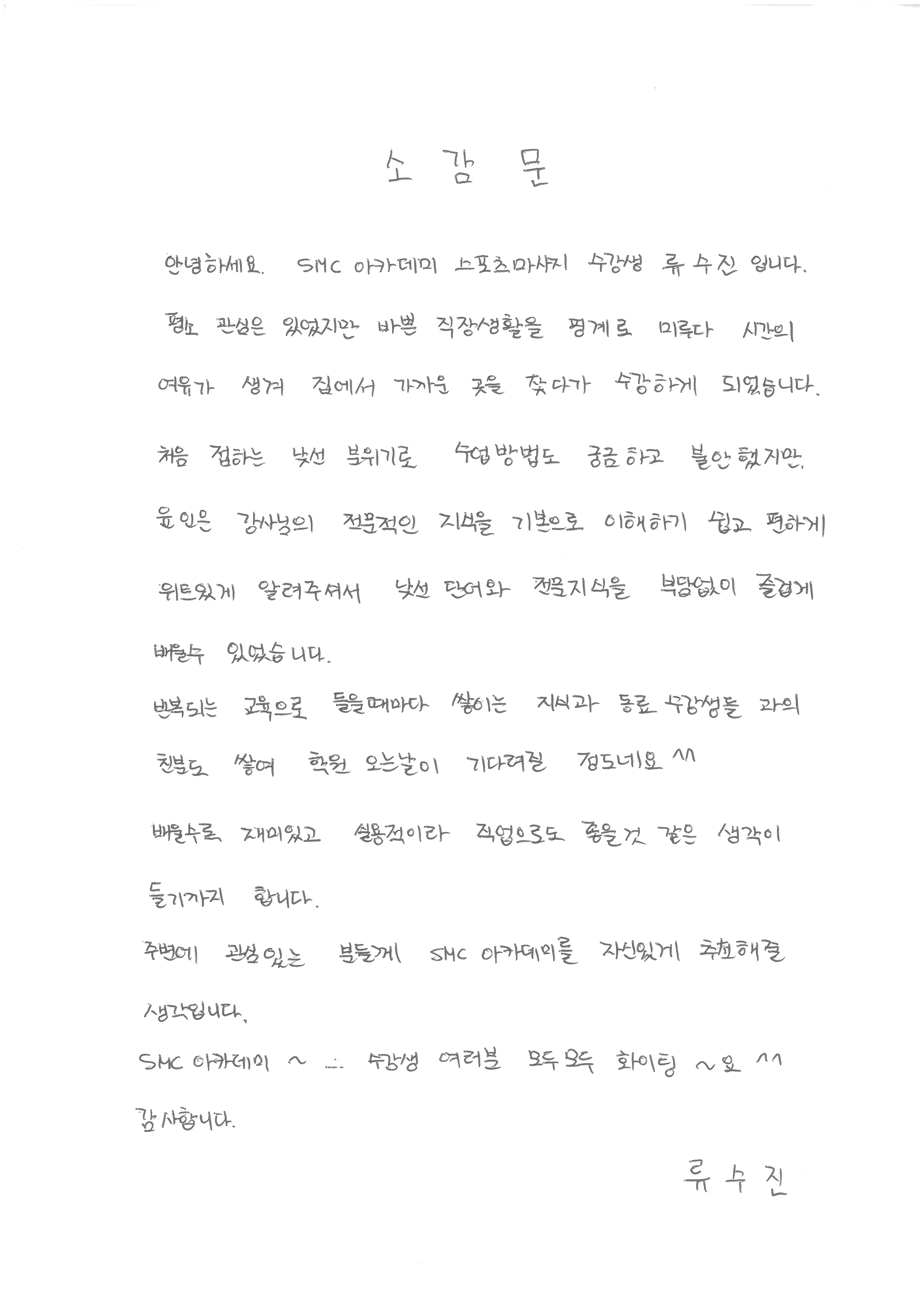 7041 종합반 교육후기, 마지막직업으로 선택해서 찾은 SMC아카데미    김수진 547