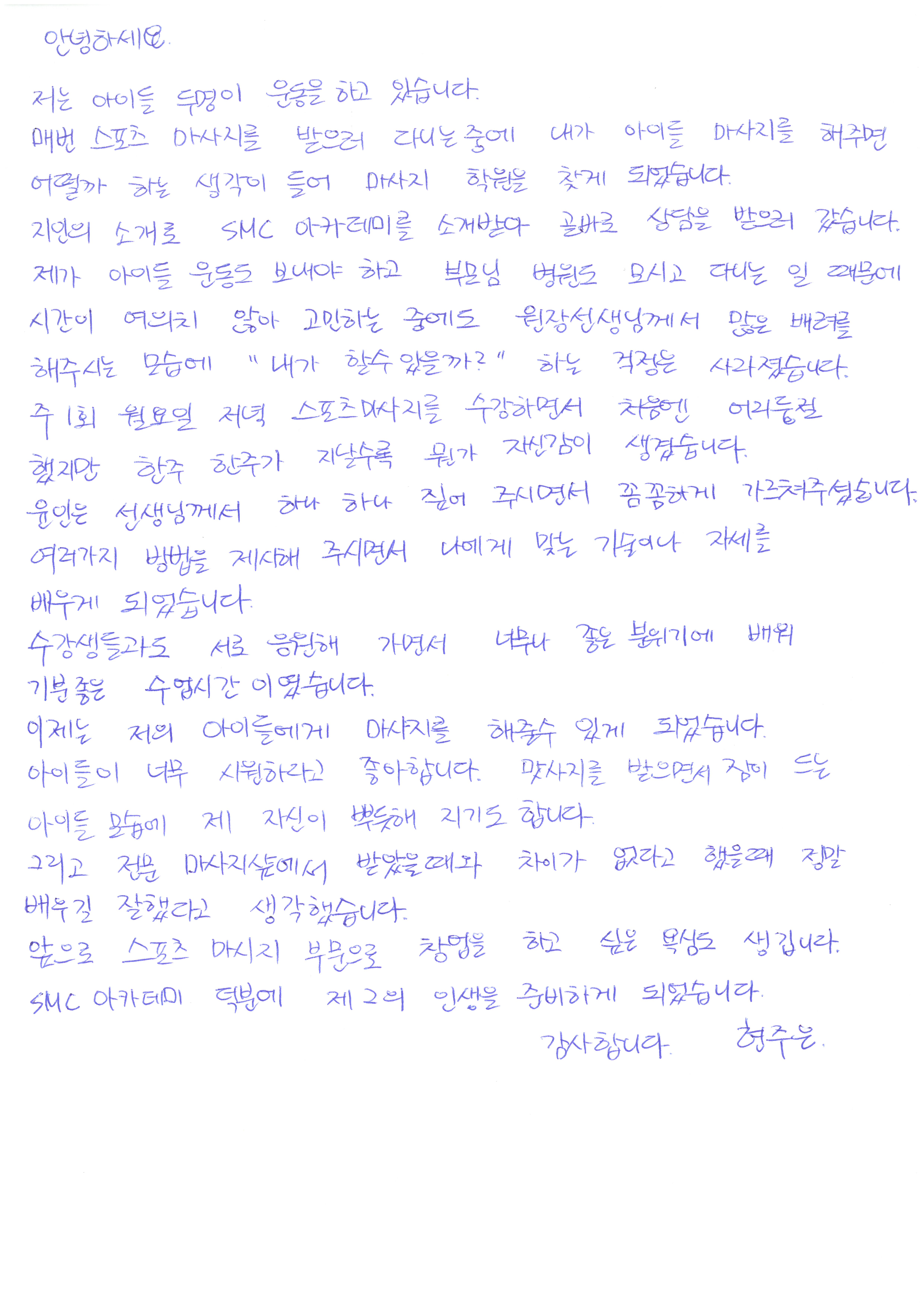 7054 스포츠마사지 교육후기 누군가에게 편안암을 주는 마사지의 매력    한영매 393