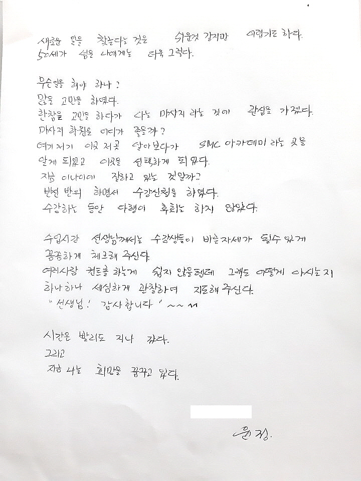 새로운일을 찾는 어려움이 많은나이에 선택한 SMC아카데미-윤정애님!