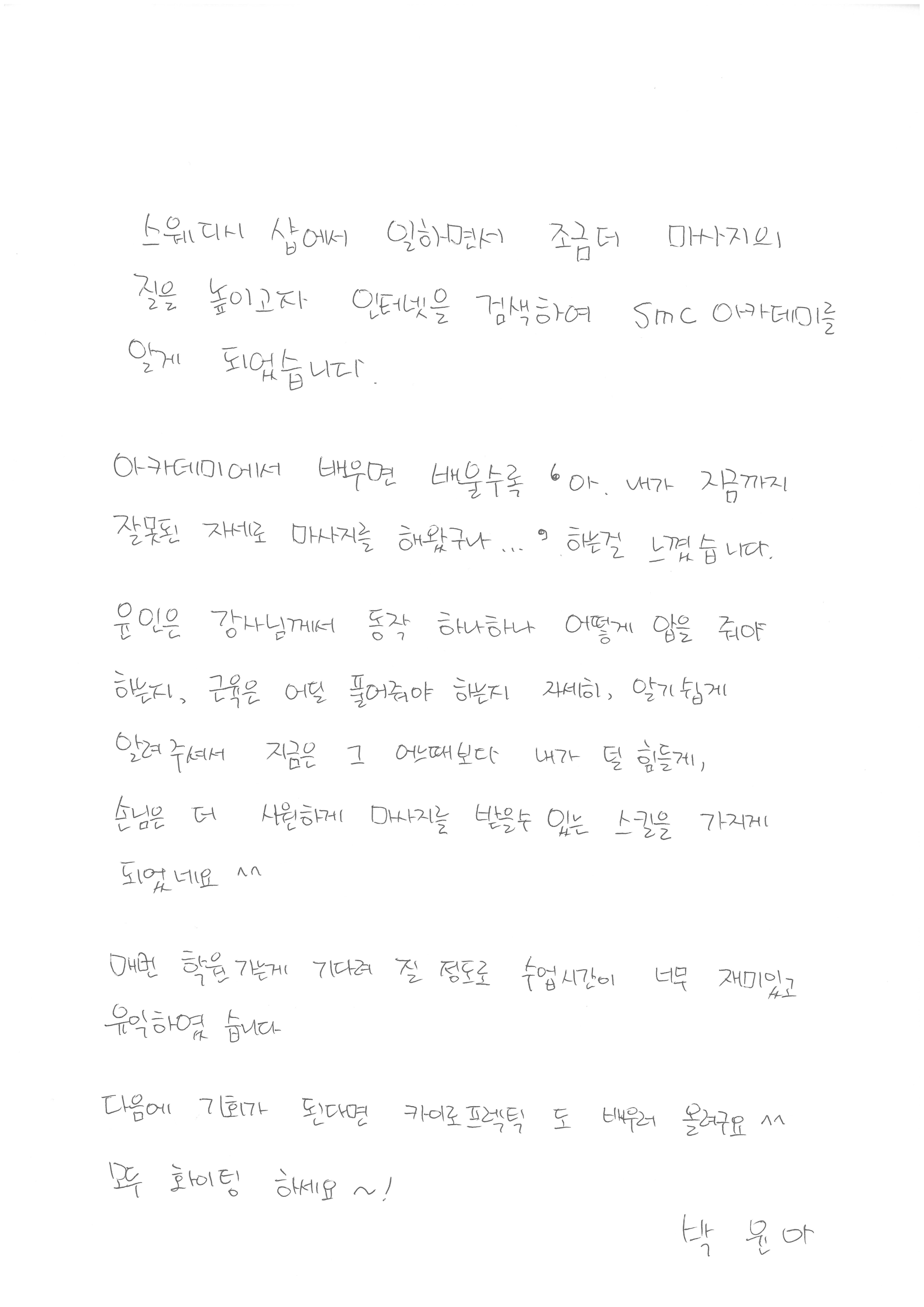 7046 아로마경락,스웨디시교육 후기(주말반)단계적인 수업에 쉽게이해    박은호 386