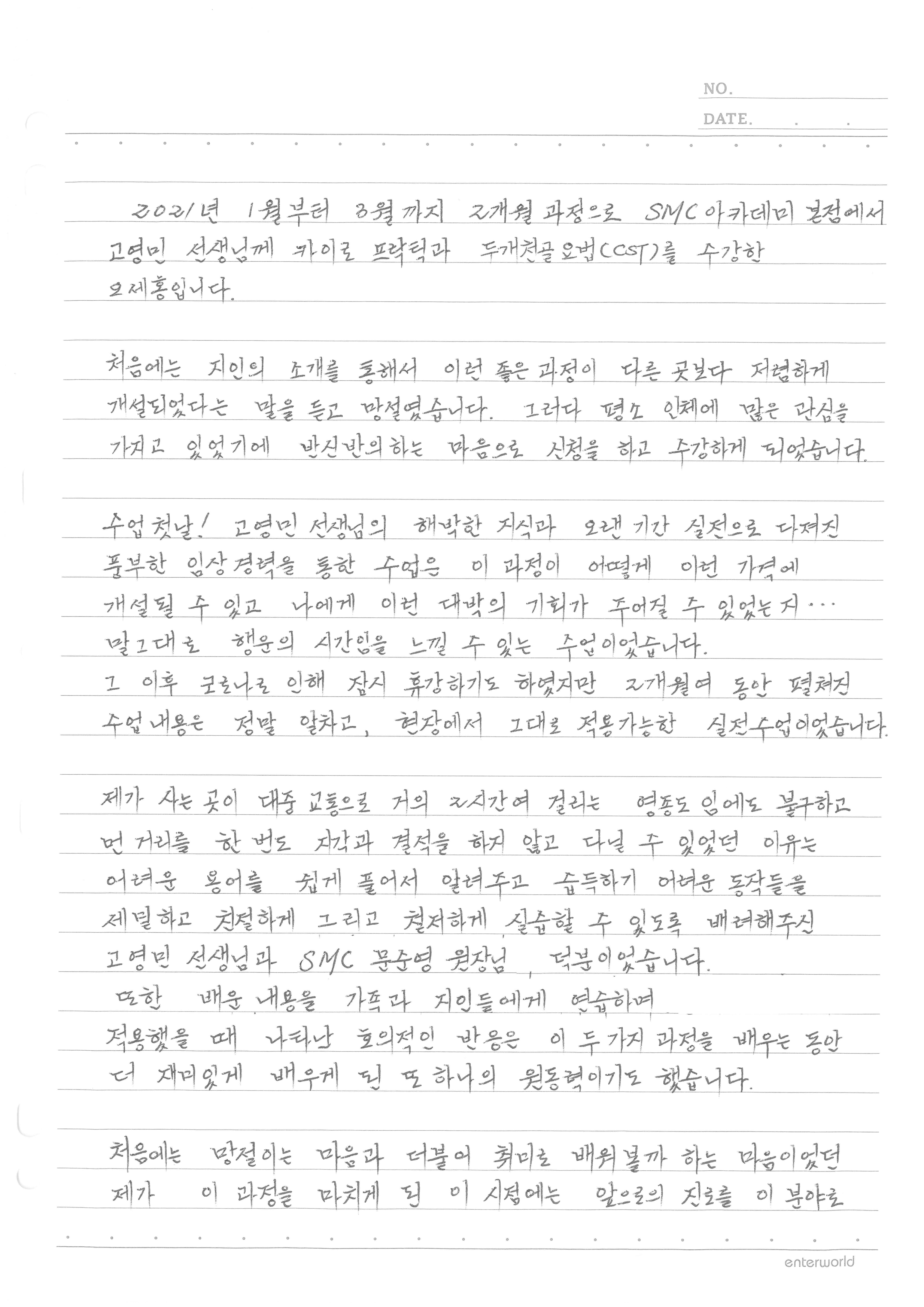 카이로프랙틱과 두개천골요법을 쉬우면서 세밀하고 친절하게 배울수 있었던- 오세홍님!