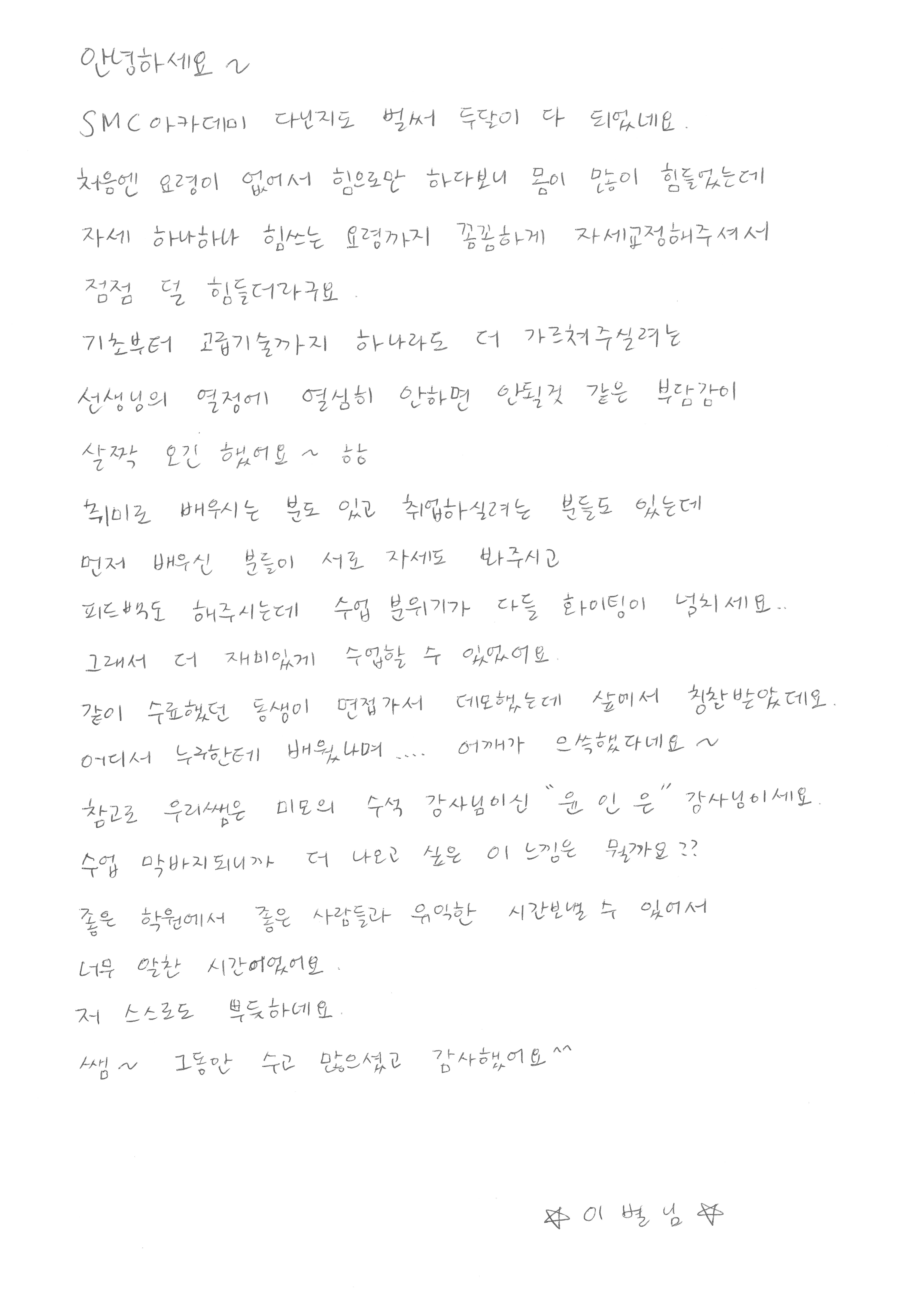 좋은 수업분위기에 수강 후, 칭찬받을 정도의 실력이되는학원- 이별님!