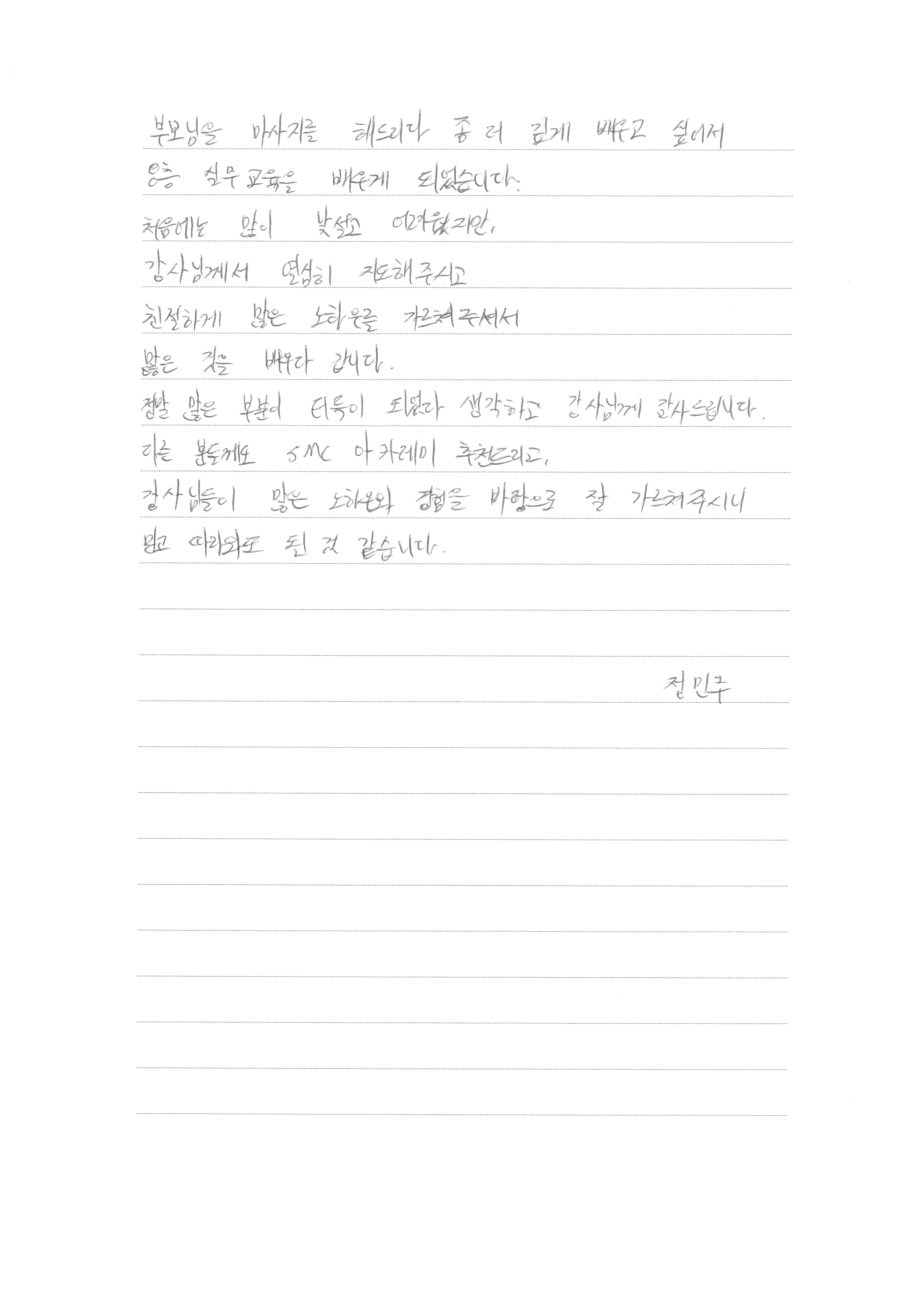 강사님의 많은 노하우와 경험을 바탕을 신뢰- 정민주님!