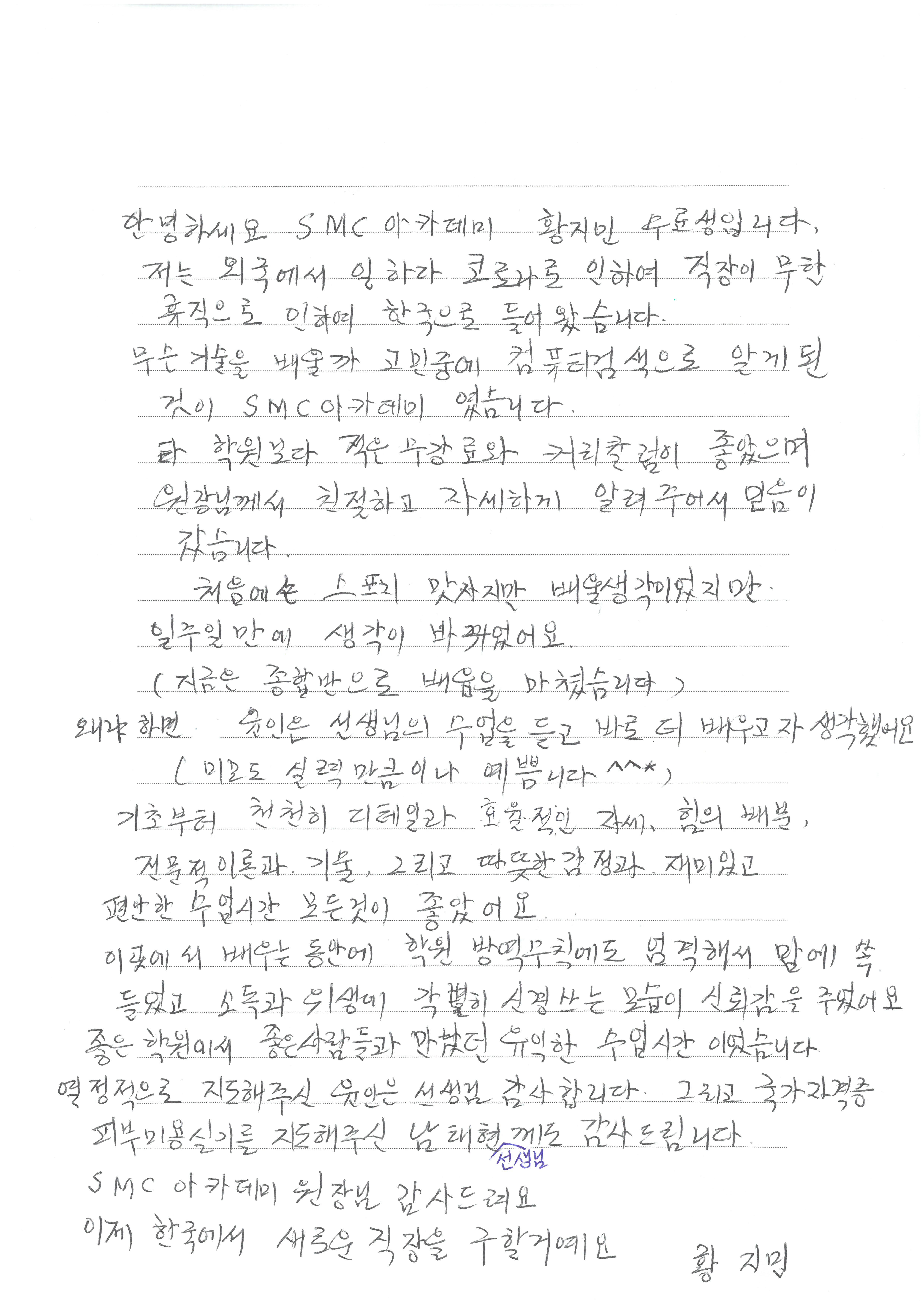 전문적 이론,기술, 재밌고 편안한수업에 모든것이 만족- 황지민님!