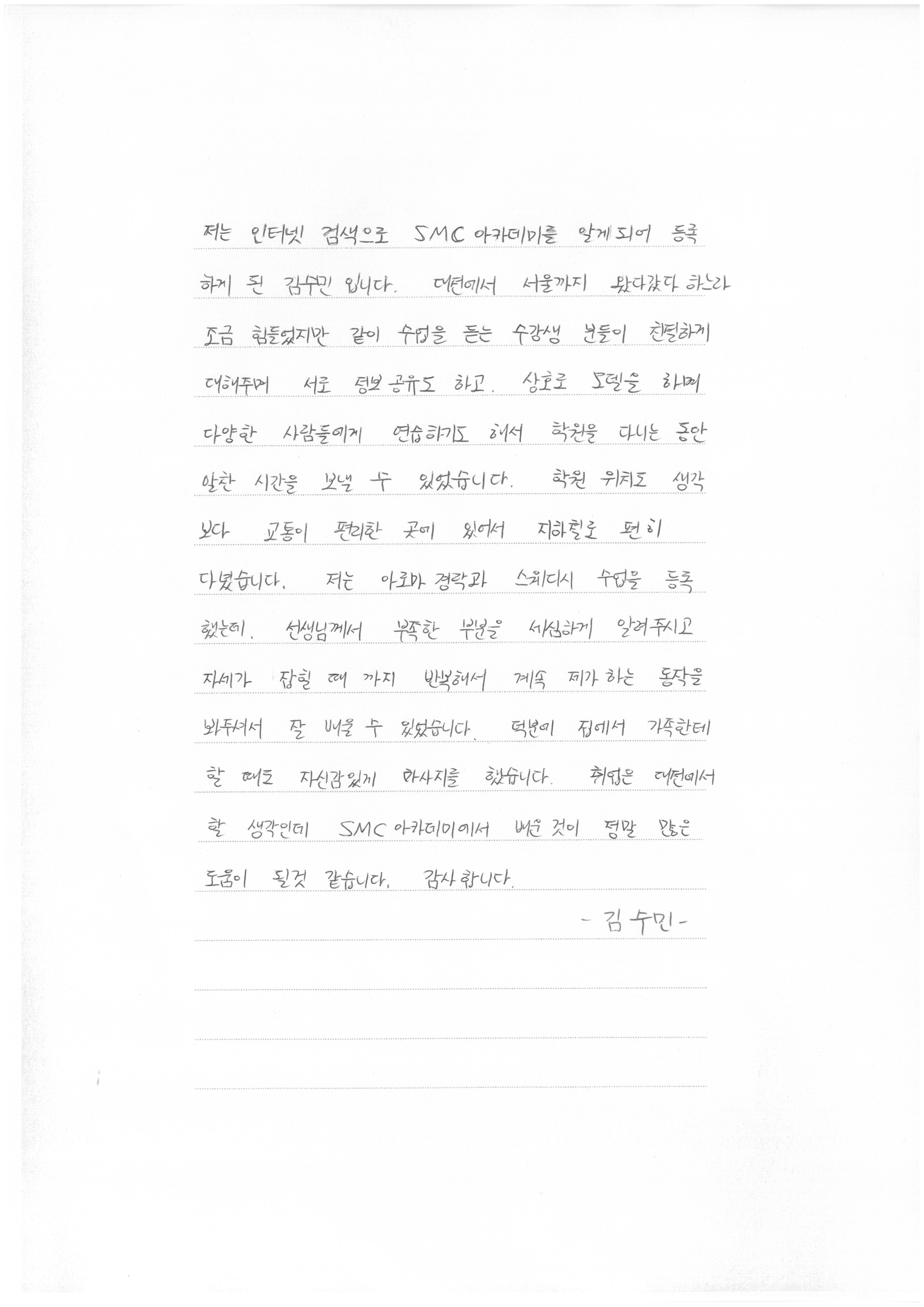 7041 종합반 교육후기, 마지막직업으로 선택해서 찾은 SMC아카데미    김수진 547