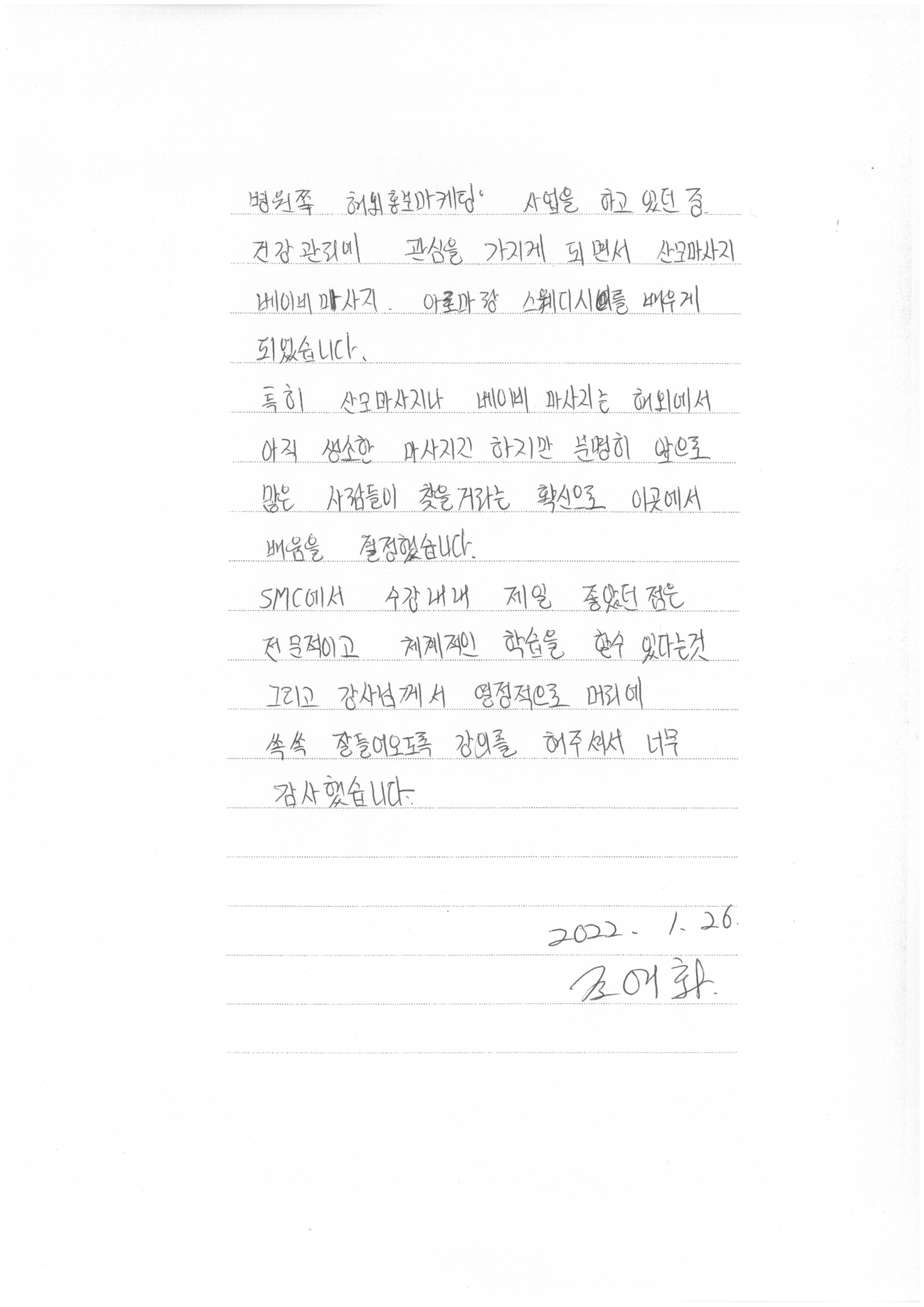 7046 아로마경락,스웨디시교육 후기(주말반)단계적인 수업에 쉽게이해    박은호 386