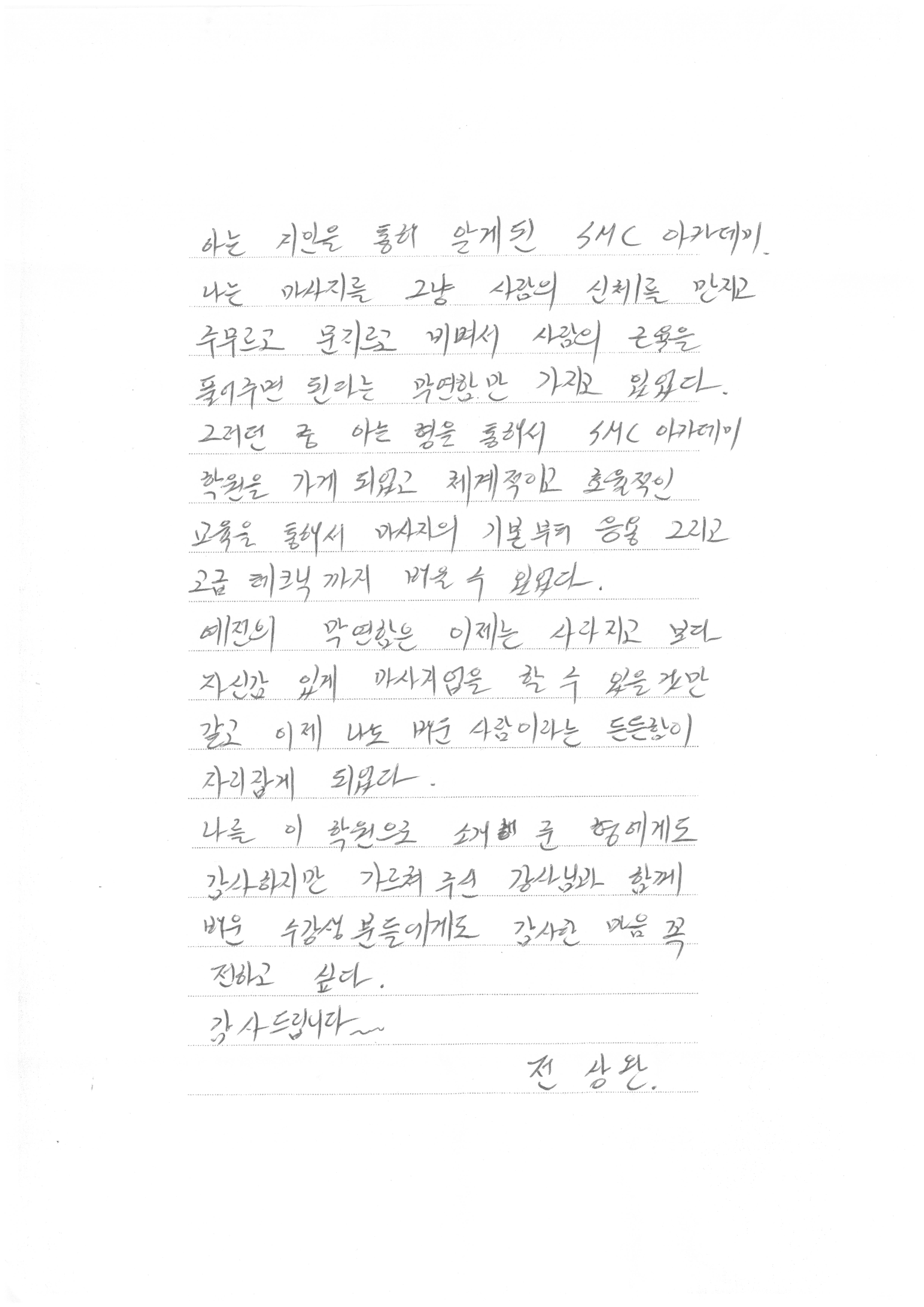 7050 스포츠마사지 교육후기 모든면에 만족스럽고 후회없는 선택    전지현 340