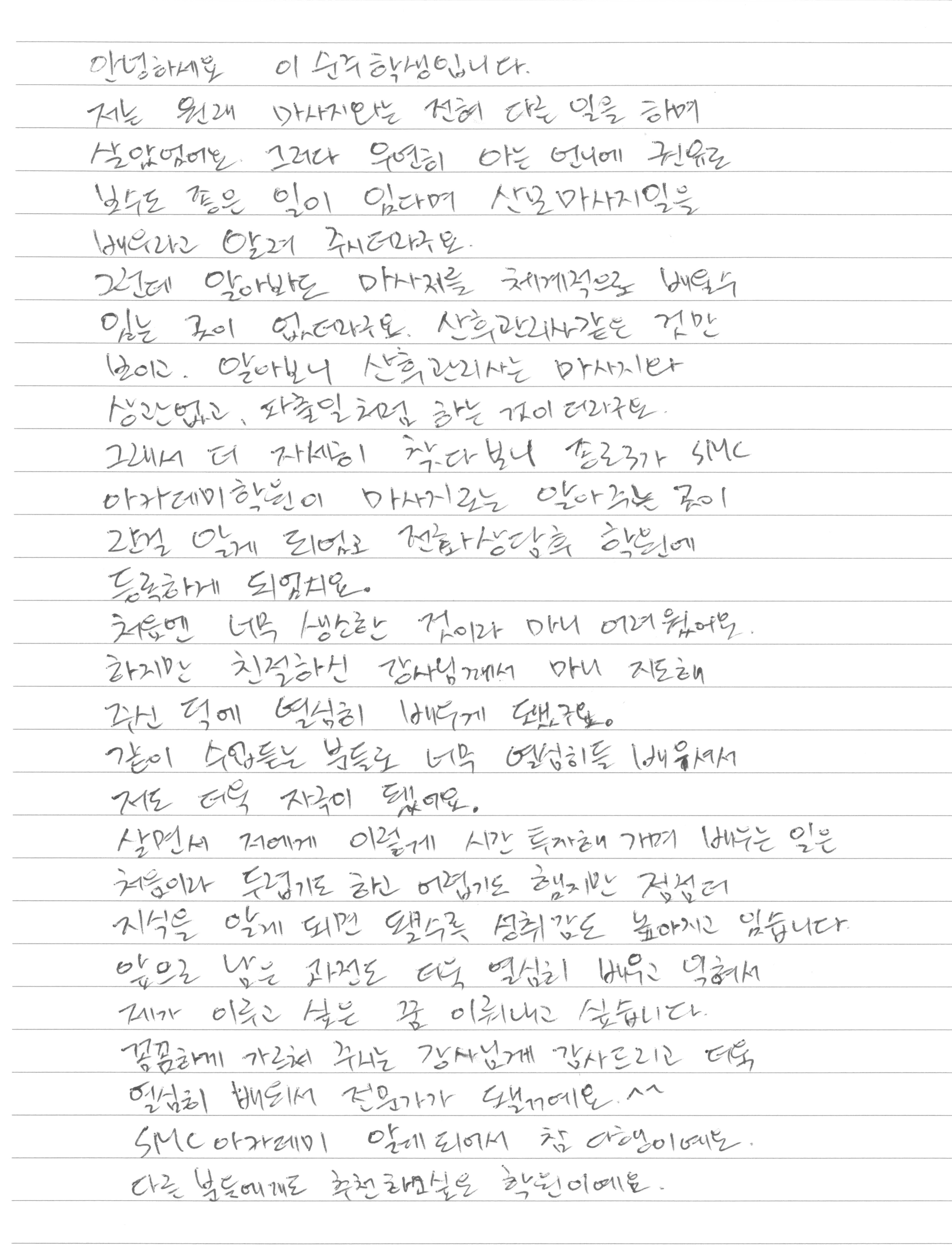 종합반 마사지교육 후기 꼼꼼한 가르침과 열성적인 수업에 자극이되는
