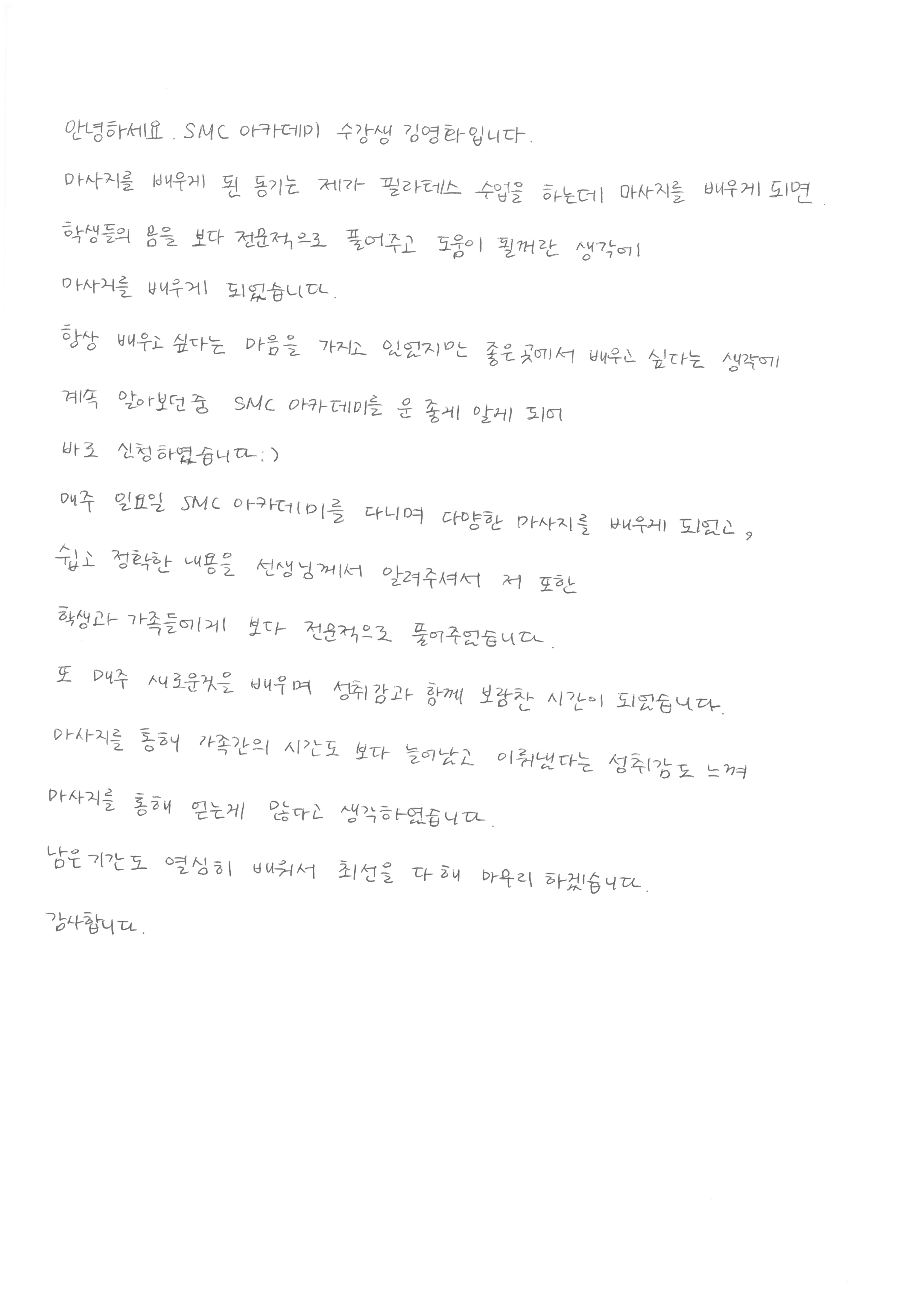 7054 스포츠마사지 교육후기 누군가에게 편안암을 주는 마사지의 매력    한영매 393