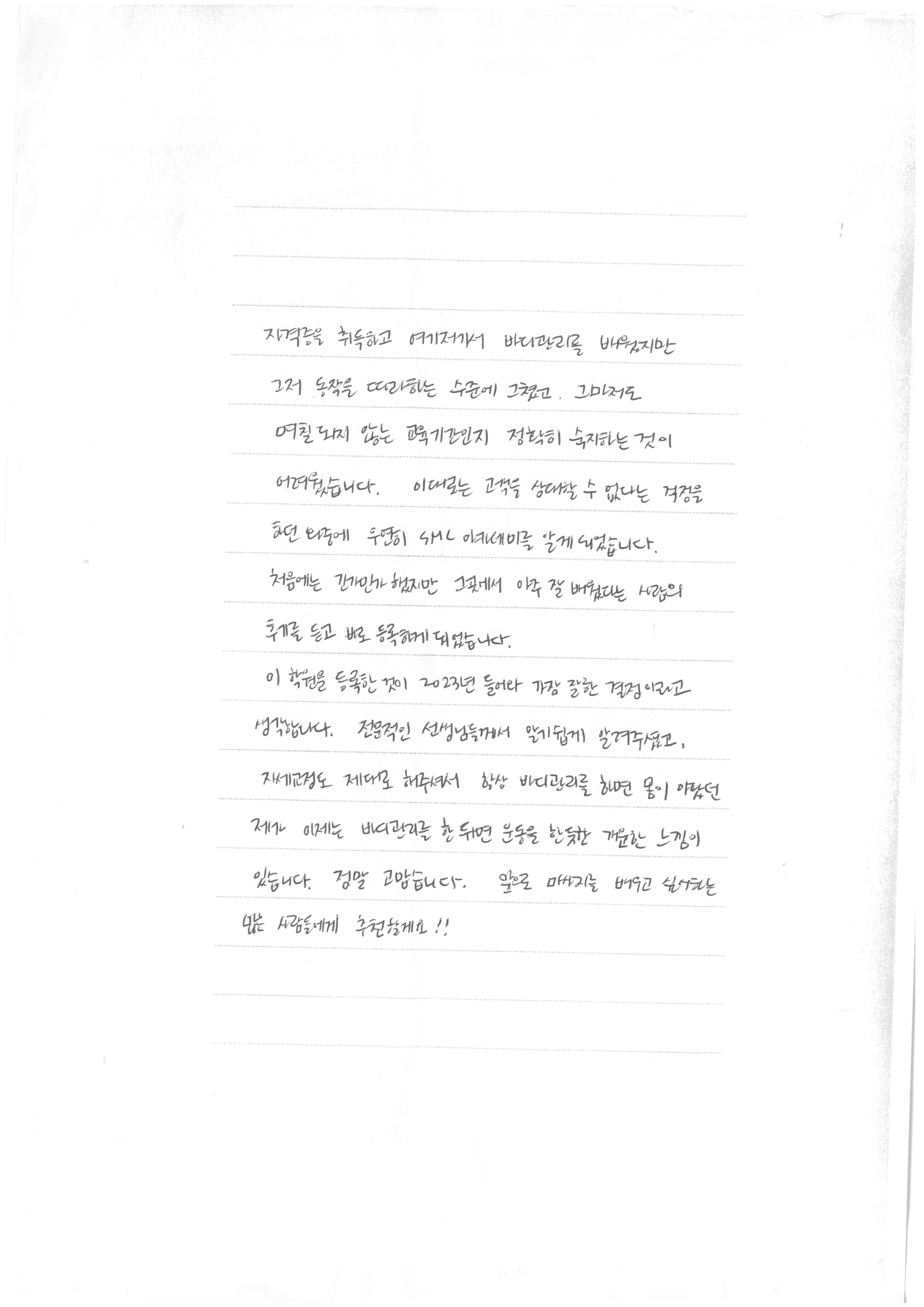 7057 스포츠마사지 교육후기 섬세하고 확실한 지도로 초보도 쉽게 이해, 새로운세계 경험    김채린 363