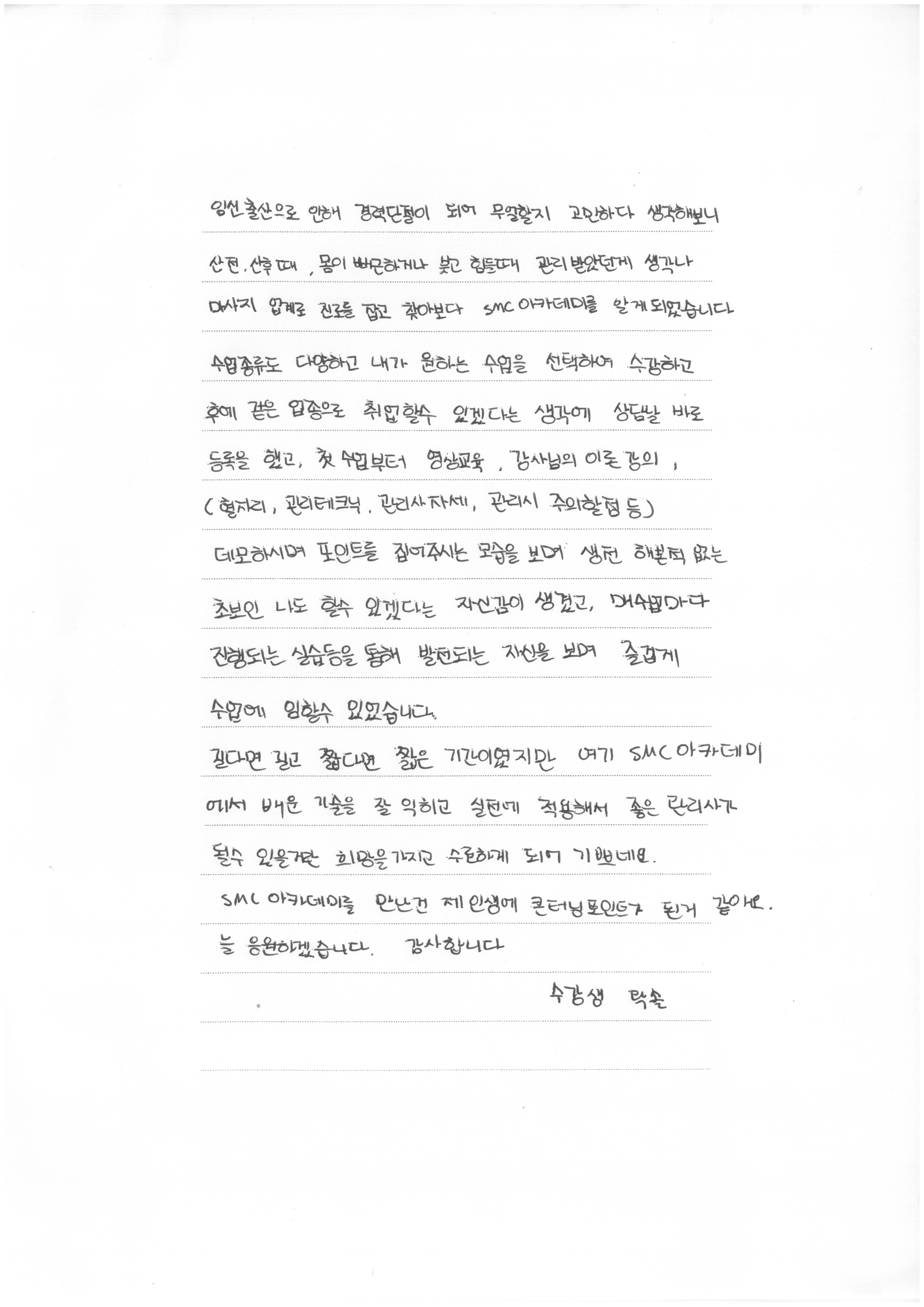 7041 종합반 교육후기, 마지막직업으로 선택해서 찾은 SMC아카데미    김수진 546