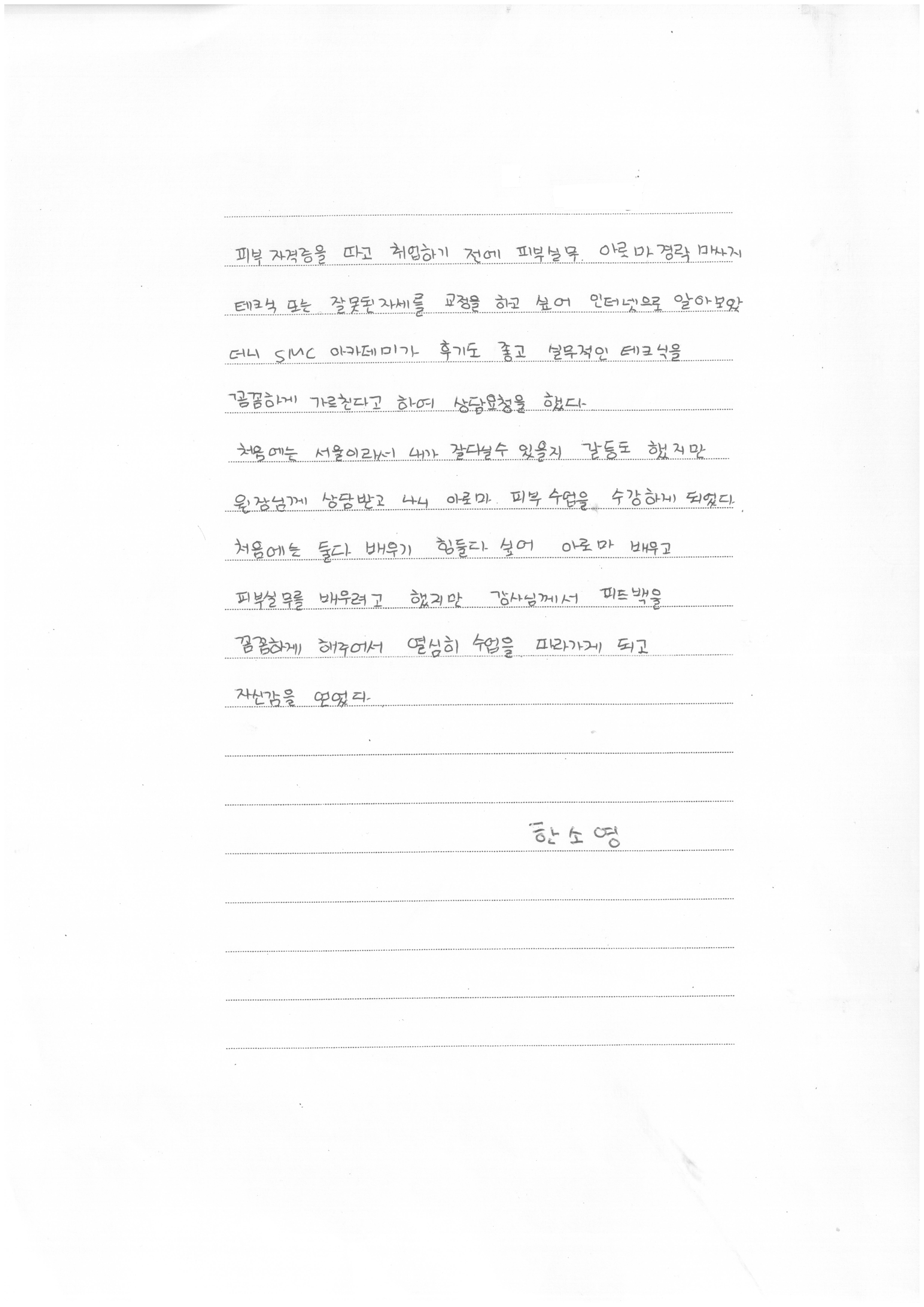 아로마경락,피부실무,스포츠마사지 교육후기, 꼼꼼한 피드백으로 자신감을