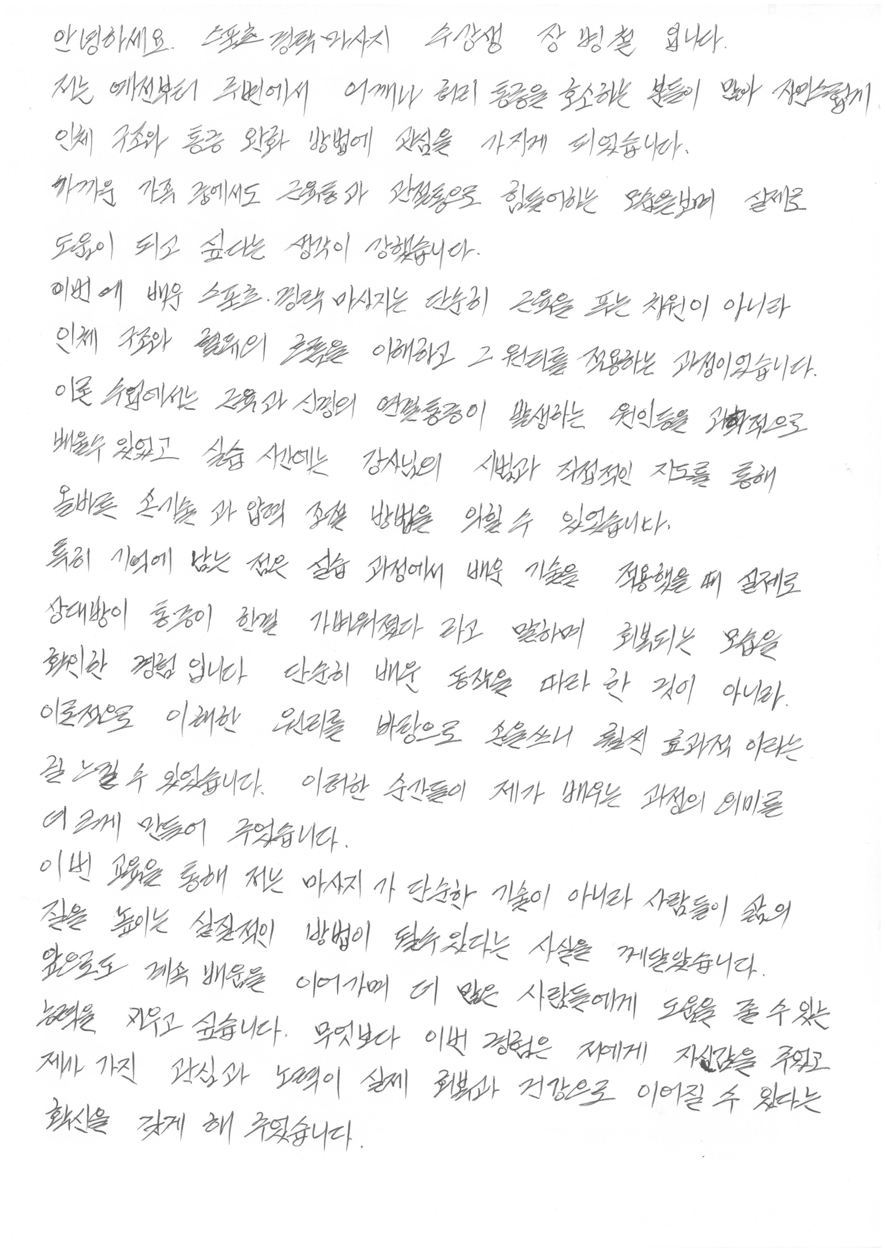 스포츠마사지, 경혈지압 교육후기(주말반)배운기술을 적용했을때 회복되는 모습    장병철 441