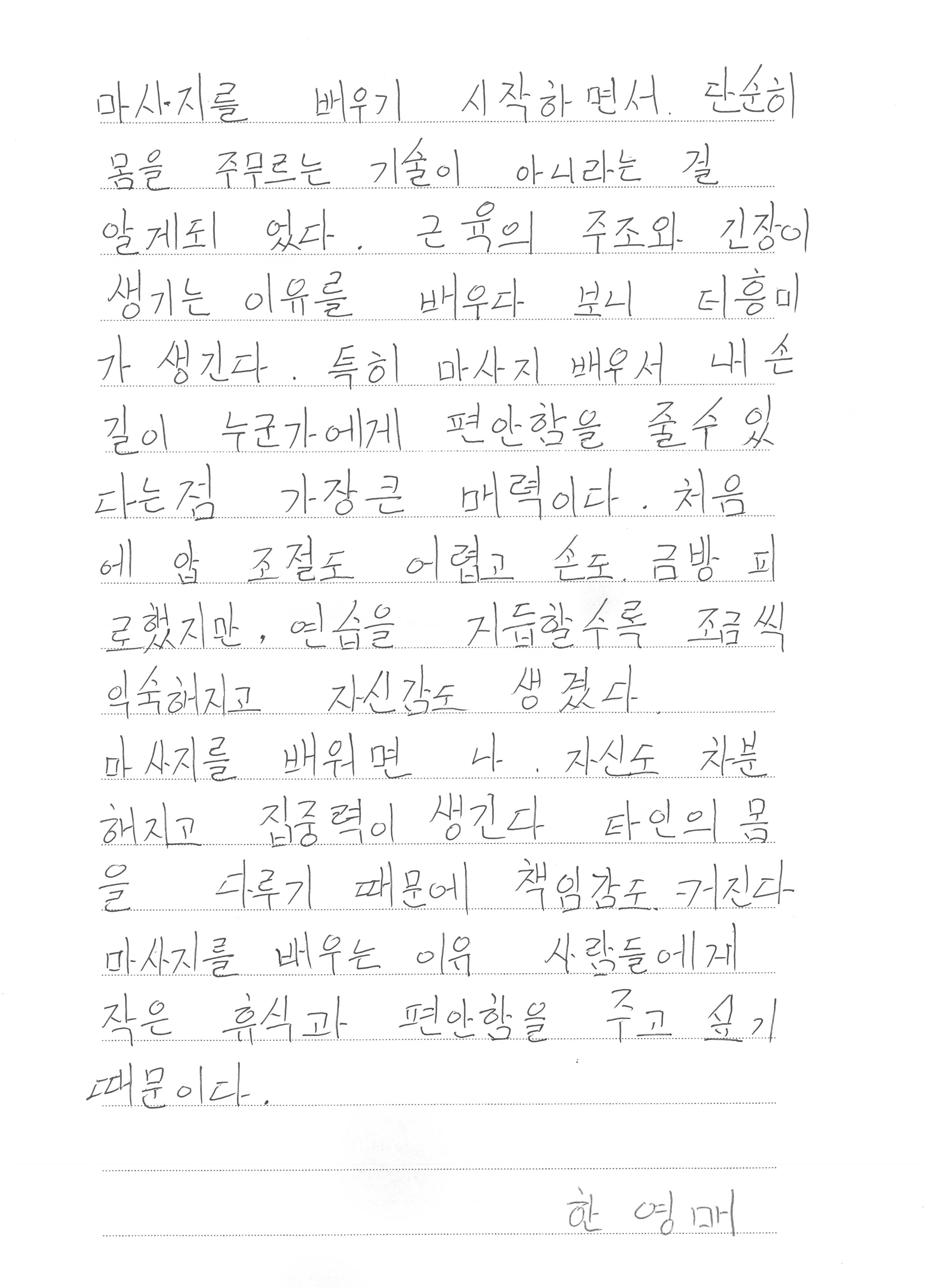 스포츠마사지 교육후기 누군가에게 편안암을 주는 마사지의 매력    한영매 392