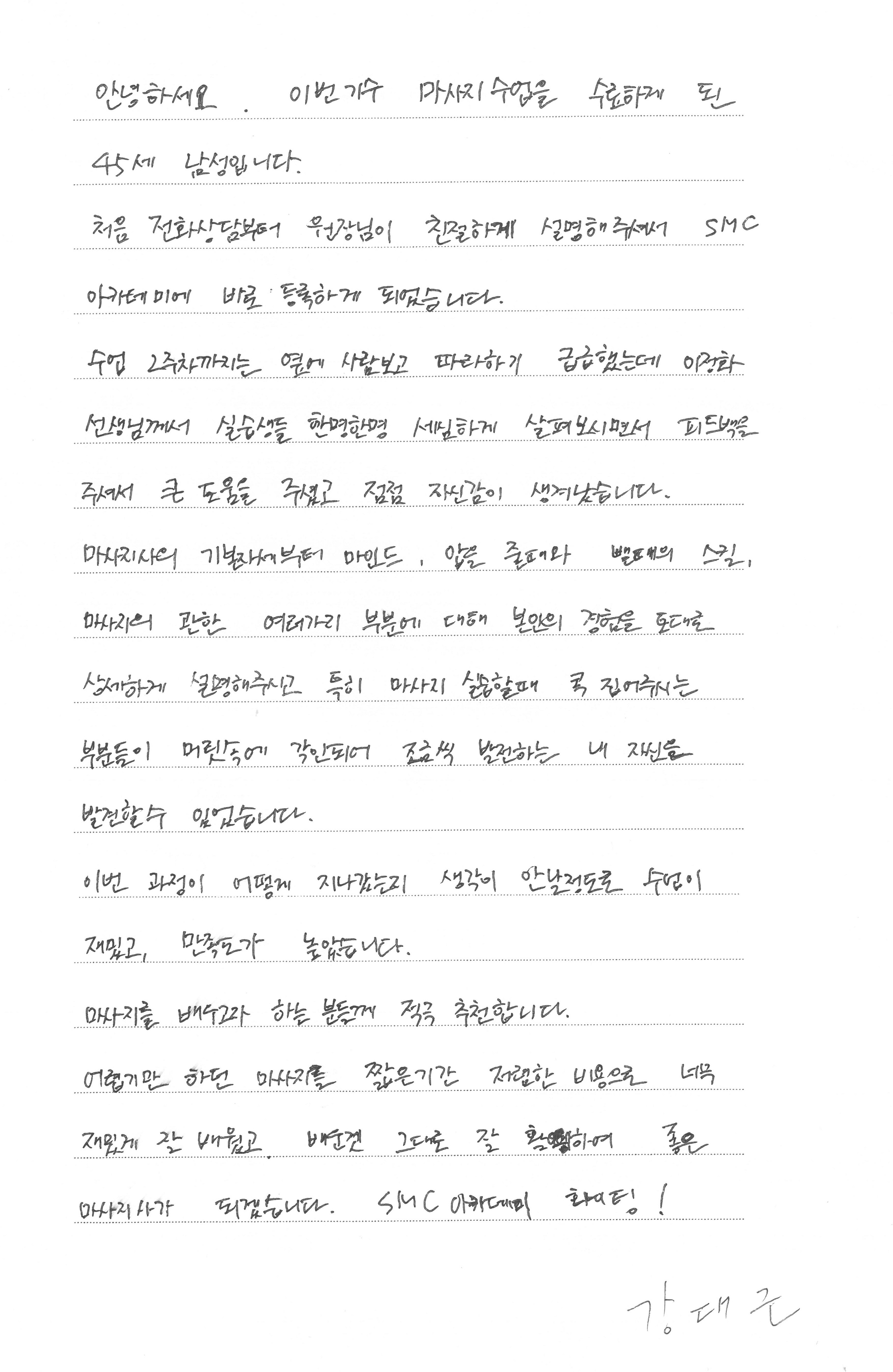 스포츠마사지 교육후기 마사지사가 되기위한 스킬,마인드까지 습득    강대근 392