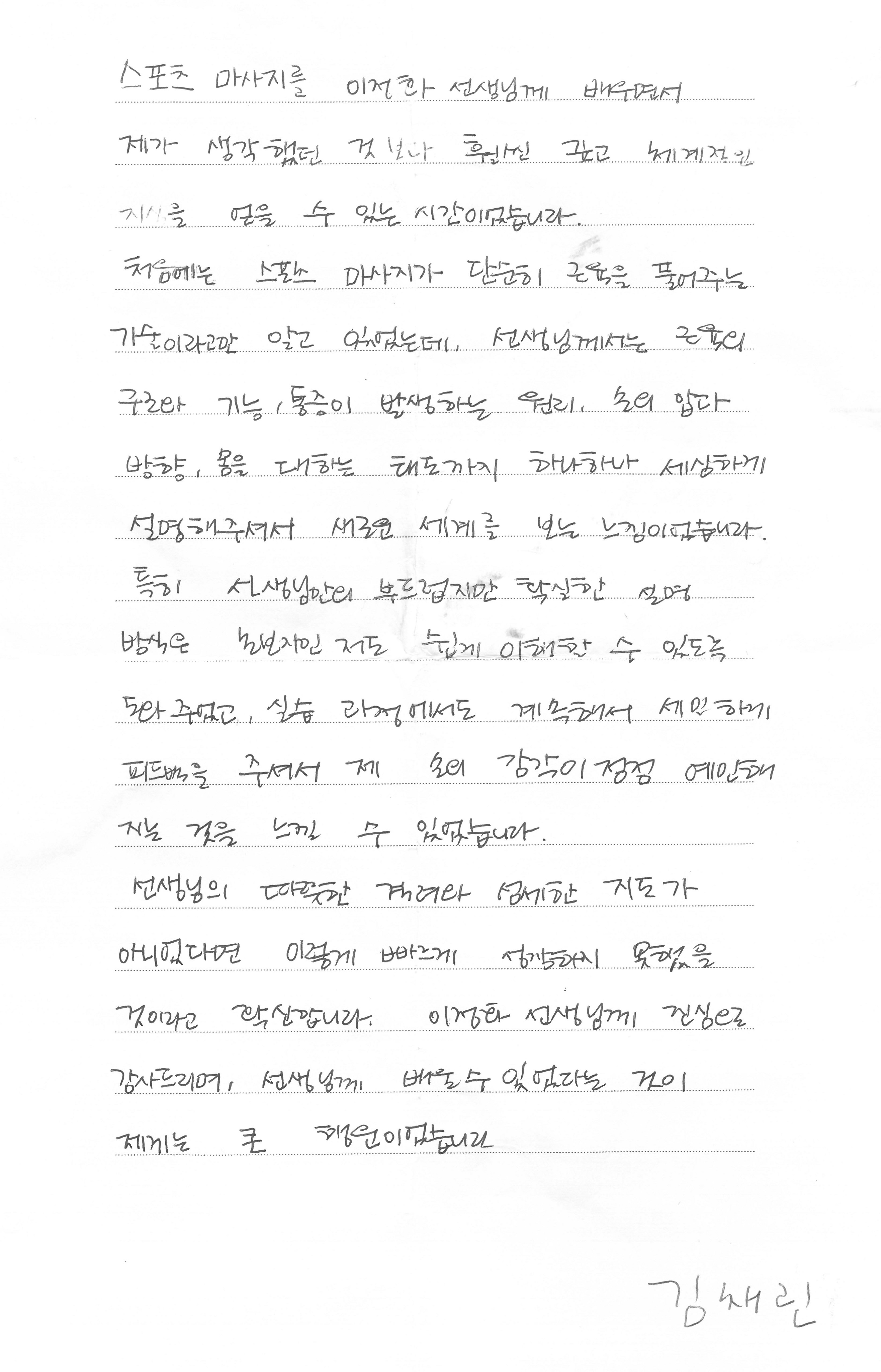스포츠마사지 교육후기 섬세하고 확실한 지도로 초보도 쉽게 이해, 새로운세계 경험    김채린 362